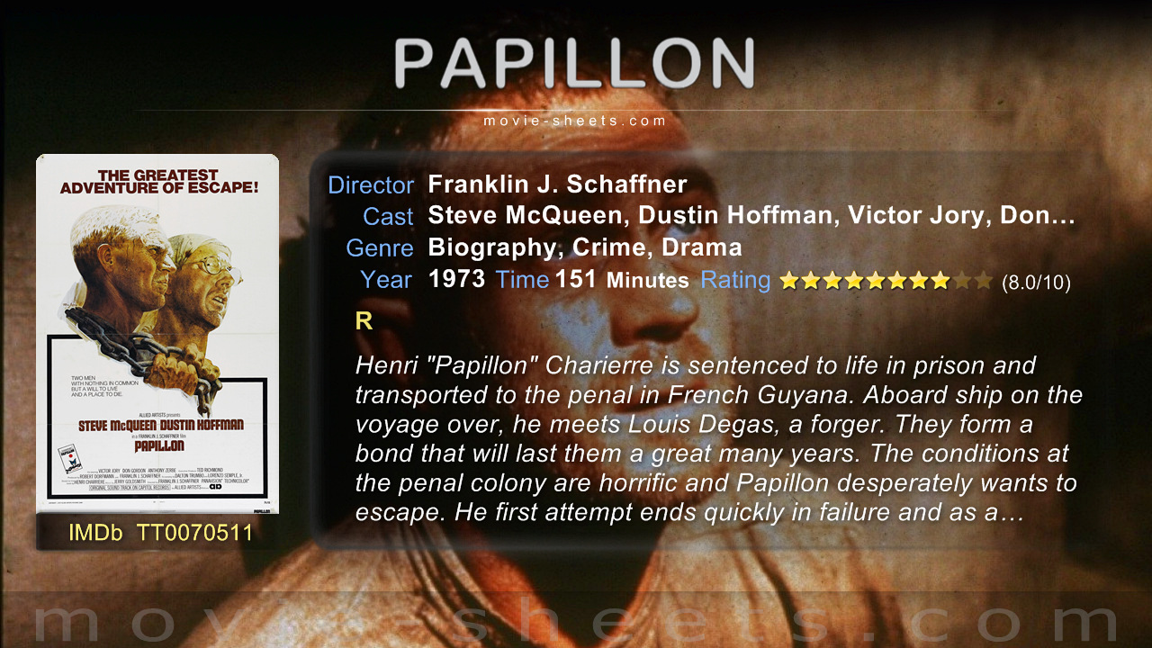 پاپیون (به انگلیسی: Papillon) فیلمی سینمایی در ژانر درام، جنایی و سرگذشت نامهای به کارگردانی فرانکلین شافنر است. این فیلم محصول سال ۱۹۷۳ فرانسه و آمریکاست و بر اساس رمانی واقعی از آنری شاریر به همین نام و با بازی استیو مک کوئین و داستین هافمن ساخته شدهاست. این فیلم در رشته بهترین موسیقی متن نامزد جایزه اسکار شد. جری گلدسمیت موسیقی متن این فیلم را ساخته است. «پاپیون» در زبان فرانسوی به معنی پروانه است و شاریر (استیو مکوئین) پروانهای را روی سینه خود خالکوبی کرده وآن را به عنوان نام مستعار خود انتخاب کرده بود و عنوان فیلم هم به همین معنی اشاره دارد